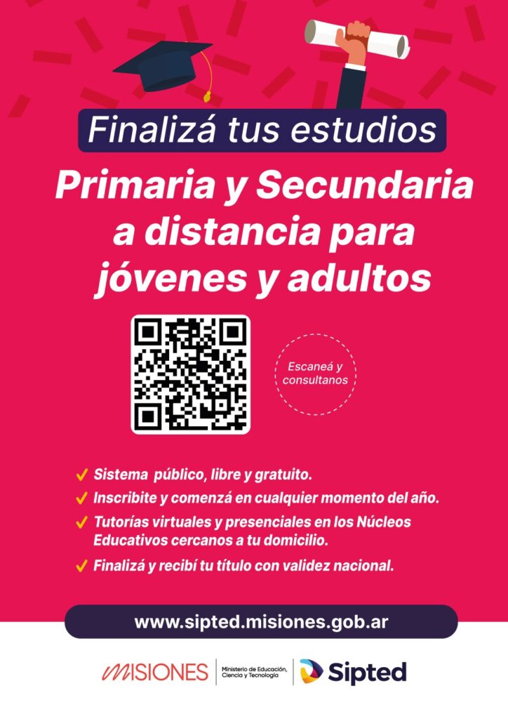 Las personas interesadas en finalizar sus estudios primarios o secundarios pueden inscribirse de manera gratuita en cualquier momento del año gracias al sistema de inscripciones abiertas con el que cuenta el SiPTeD. Para más información pueden: